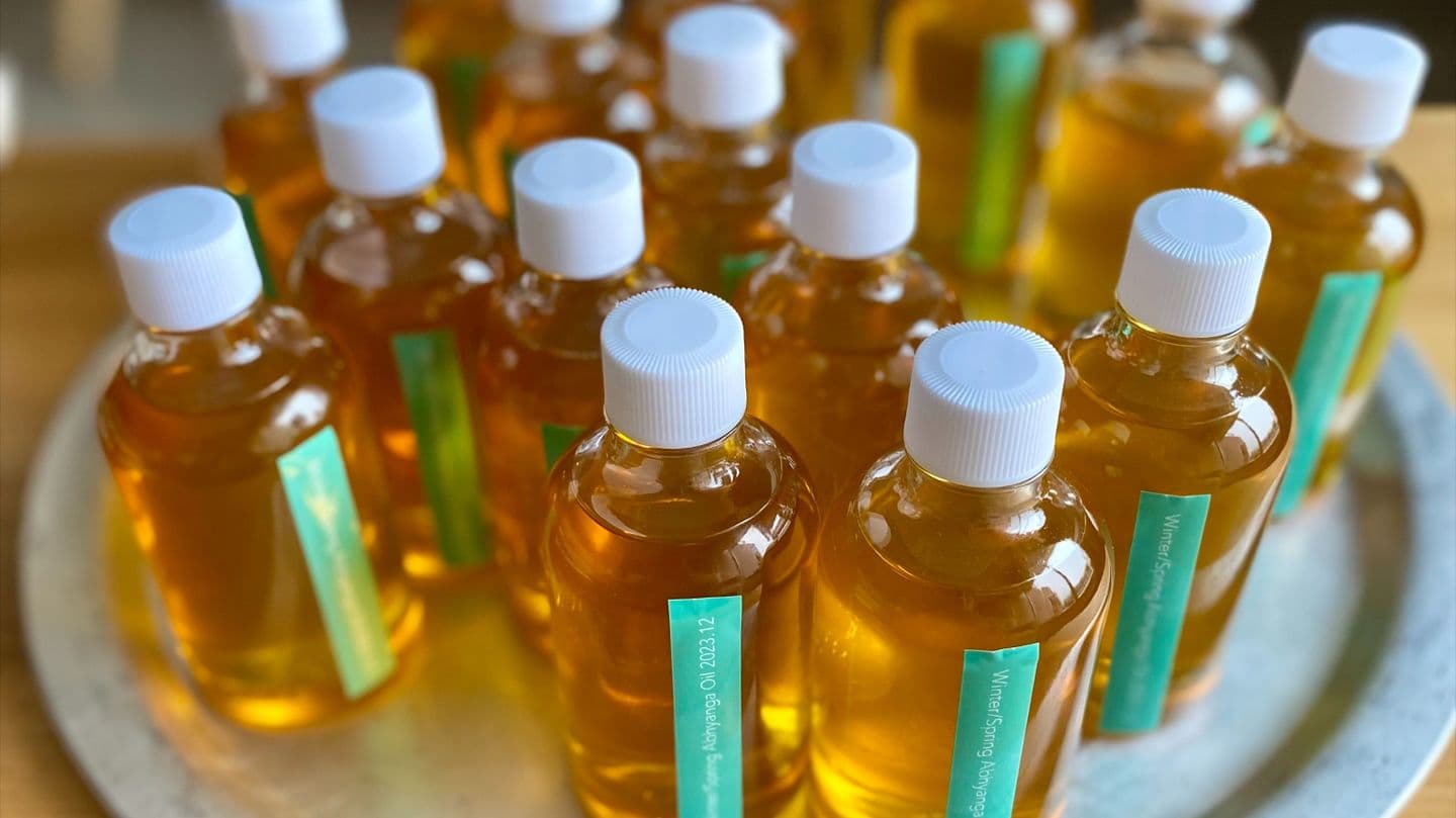 🍯 季節にあったオイル作り:ボディオイル、ヘッドオイルの2種類を実際に一緒に作ります。
